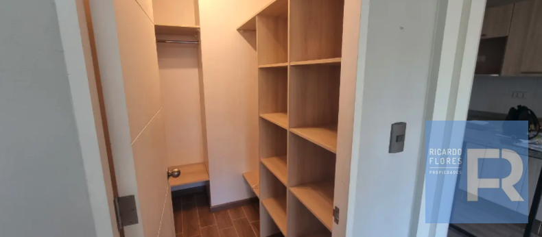 El departamento consta de estar comedor con balcón y cocina americana integrada. Dispone de un dormitorio matrimonial en suite, con baño completo y walking closet. Incluye cortinas roller, luces led, una bodega y un estacionamiento. El edificio cuenta con ascensor y gimnasio.